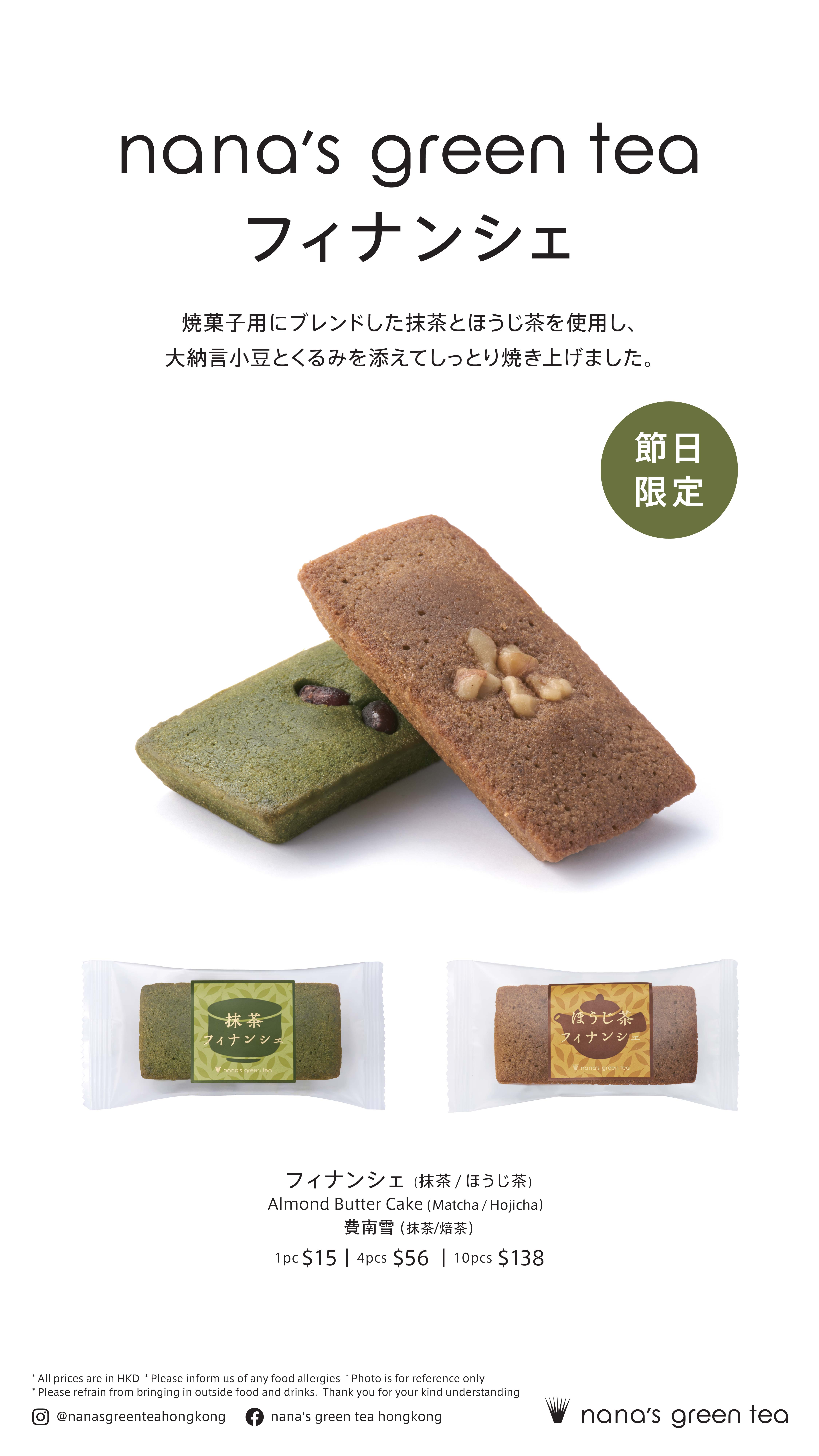 nana's green tea Financier (Almond Butter Cake) Makes a Comeback! Winter-limited Financier is back! Available in Matcha and Hojicha flavors with rich tea aroma, perfect for gifting or personal enjoyment!